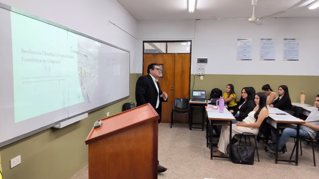 “Gestión de Riesgos Meteorológicos y Climatológicos” En el marco del Proyecto de Integración de Materias, se desarrolló la charla a cargo del Prof. Abg. Juan Manuel Vázquez Ramírez, con la organización de las docentes Lic. Delia María Jilek (5to. Año Ingeniería Comercial) y Lic. Paulina Benítez (4to. Año Economía).