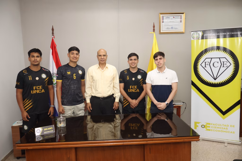 El equipo de Fútbol de Salón de la FCE UNCA se consagró campeón en su categoría en los Juegos Universitarios del Paraguay 🎉👏. Representantes del plantel fueron recibidos por el Decano, Prof. Dr. Roberto Cáceres Florentín, quien felicitó a los campeones y, en nombre de ellos, hizo extensivo el reconocimiento a todos los equipos que…