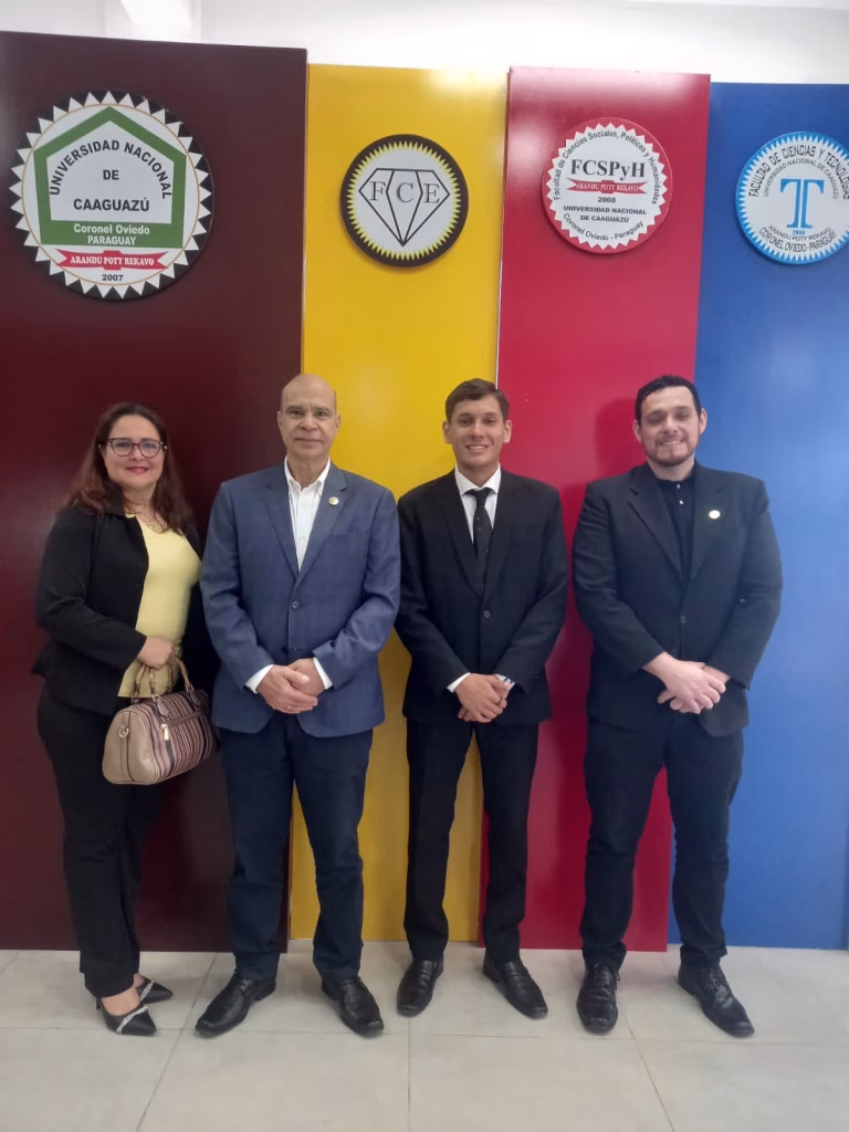 En la fecha, la FCE UNCA marcó presencia en el encuentro académico, encabezado por el Decano, Dr. Roberto Cáceres Florentín, conjuntamente con el Director de Investigación, Dr. Arnaldo Rojas, la Directora de Extensión Universitaria, Lic. Carolina Sanabria, y el Universitario Rolando Enmanuel Sánchez Martinez, alumno del 4° Curso, de la carrera de Economía. En tal espacio de divulgación internacional, el estudiante ha presentado los resultados de la investigación emprendida, propiciando un intercambio de conocimientos coyunturales.