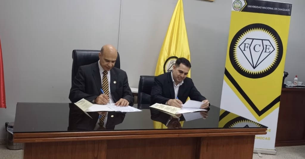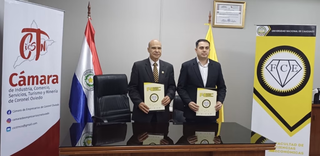 El acuerdo fue firmado por el Prof. Dr. Roberto Cáceres Florentín, Decano de la FCE UNCA, y por el Sr. Elvio David Escobar González, Presidente de la Cámara y referente empresarial de la ciudad de Coronel Oviedo.