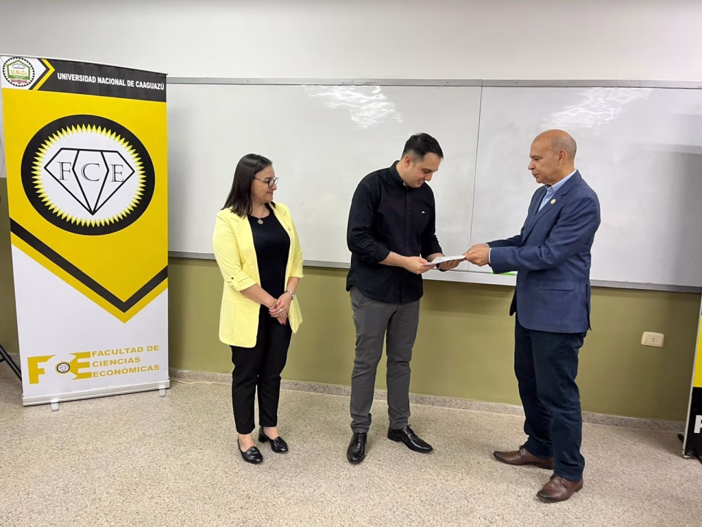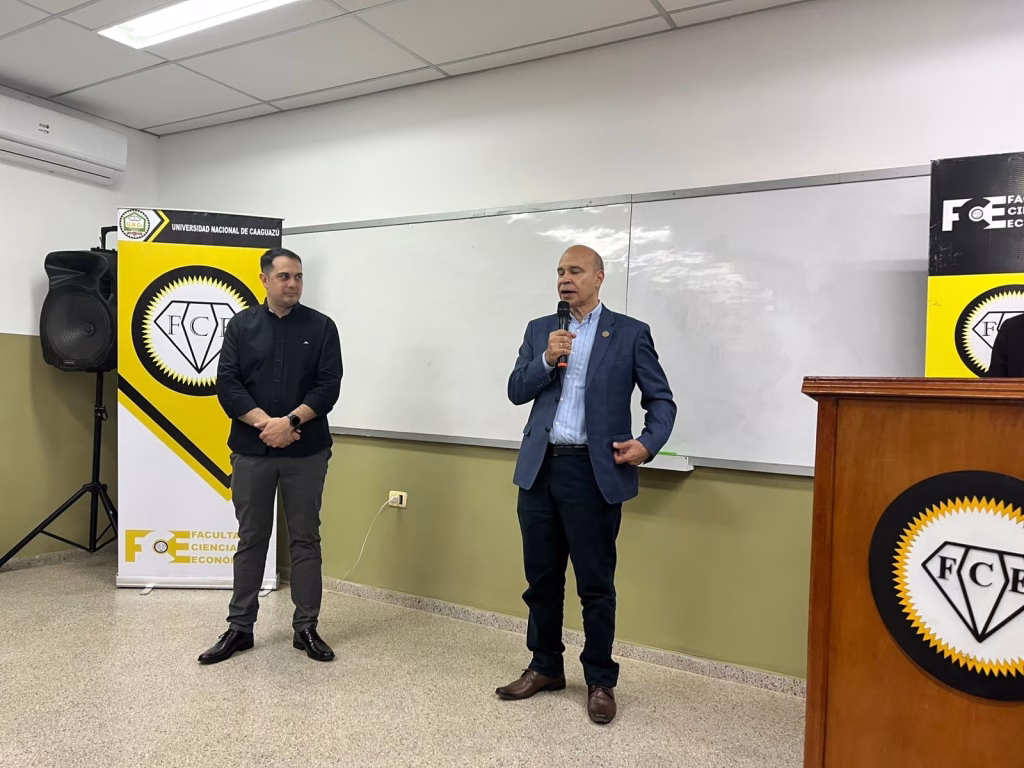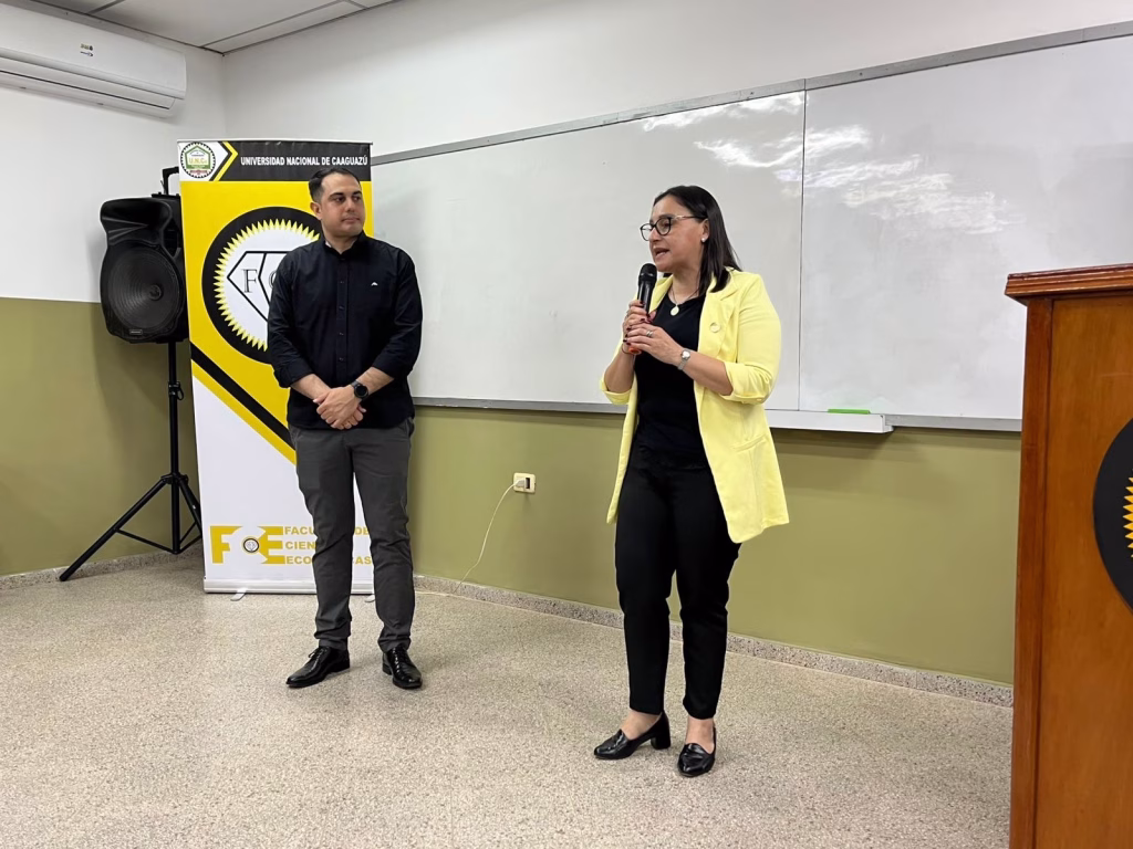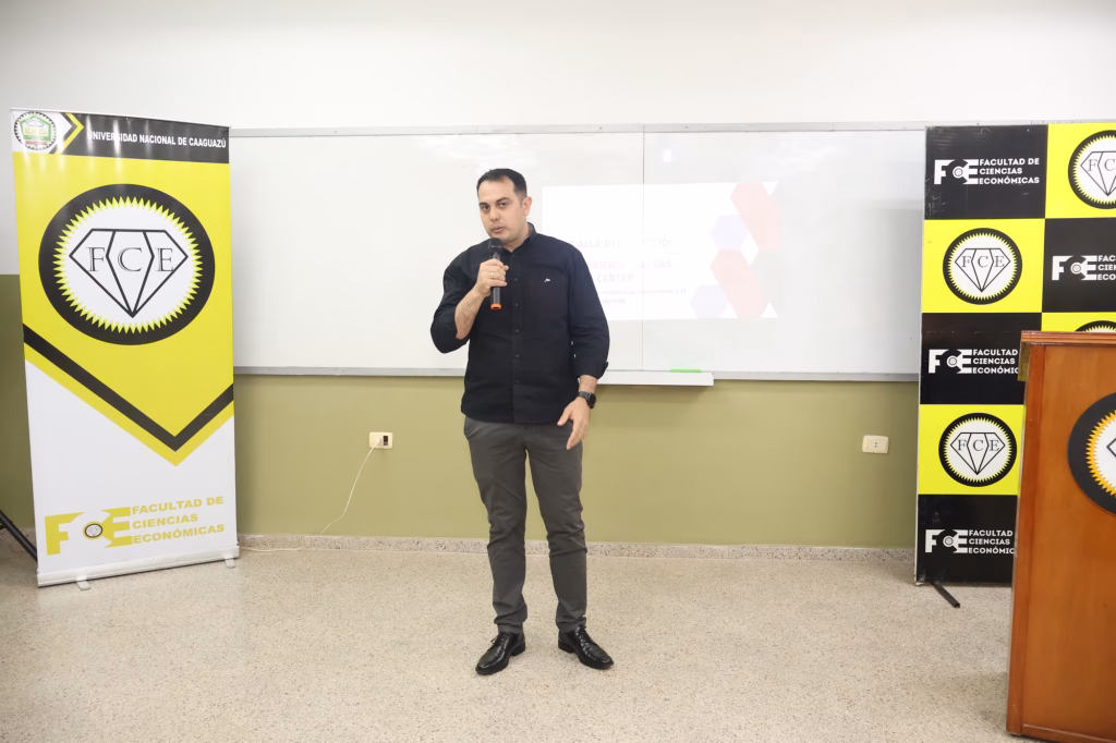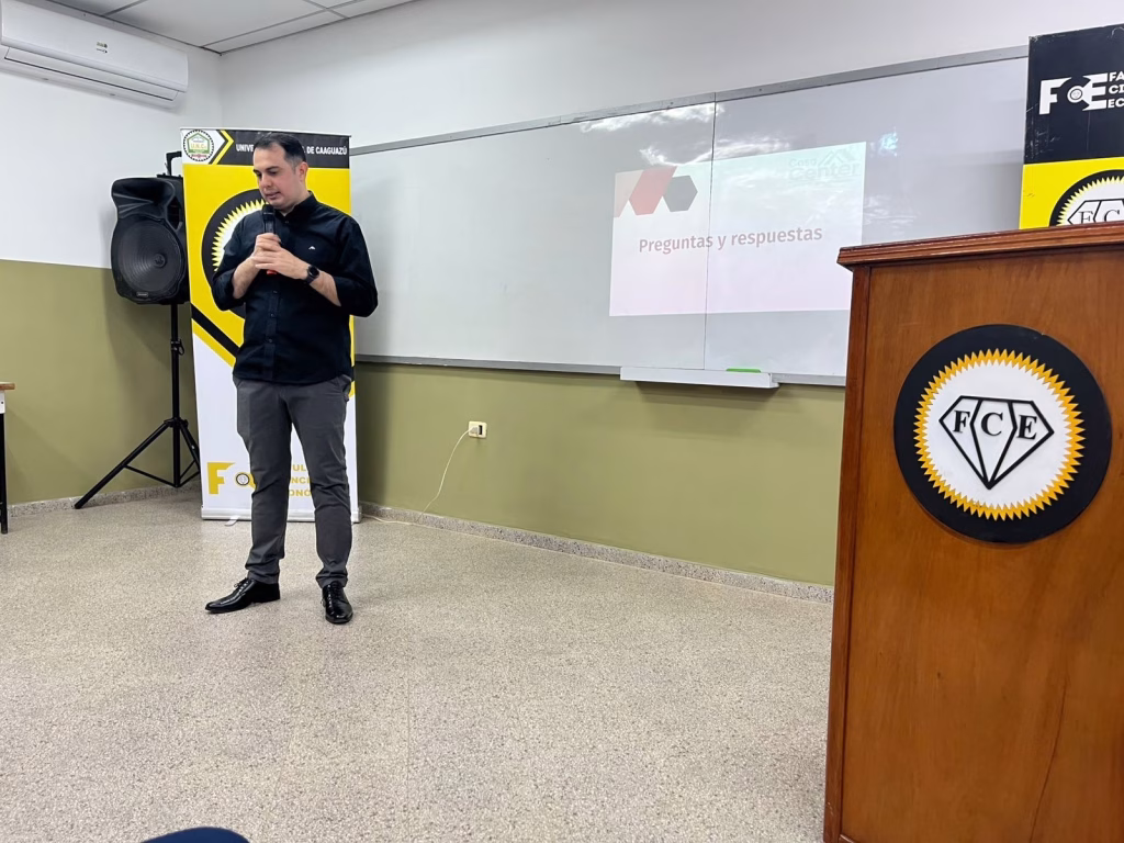 La charla estuvo a cargo del Sr. Elvio David Escobar González, empresario y emprendedor ovetense, socio fundador de Casa Center y actual Presidente de la Cámara de Industria, Comercio, Servicios, Turismo y Minería de Coronel Oviedo.