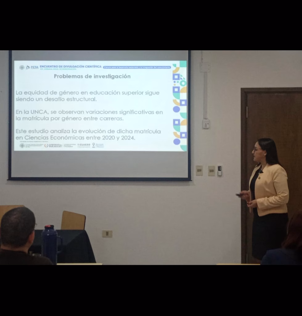 - “Análisis comparativo de matrícula por género en Ciencias Económicas, Universidad Nacional de Caaguazú (2020–2024)”, a cargo de la Prof. Dra. Elizabeth Concepción Sánchez Sánchez, docente de las carreras de Contaduría Pública, Ingeniería Comercial y Economía.
