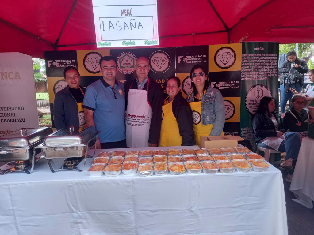 La Facultad de Ciencias Económicas de la UNCA, se encuentra presente con su stand, ofreciendo como menú Lasagna; participan del evento el Decano, Prof. Dr. Roberto Cáceres Florentín, con la comitiva institucional, quienes recibieron la visita de la Rectora de la UNCA, Mag. María Gloria Martínez Blanco y del Monseñor de la Diócesis de Coronel Oviedo, Mons. Juan Bautista Gavilán.