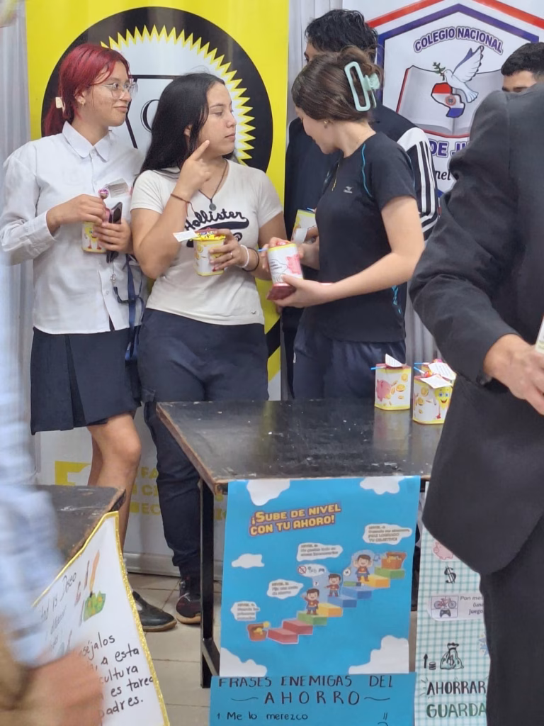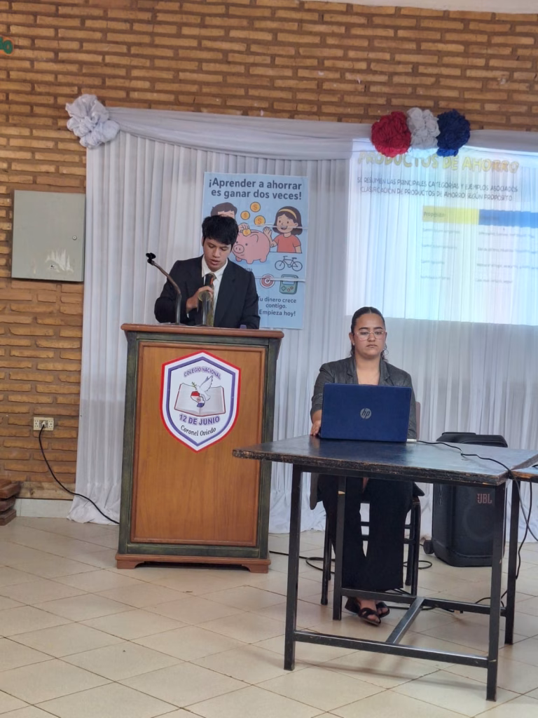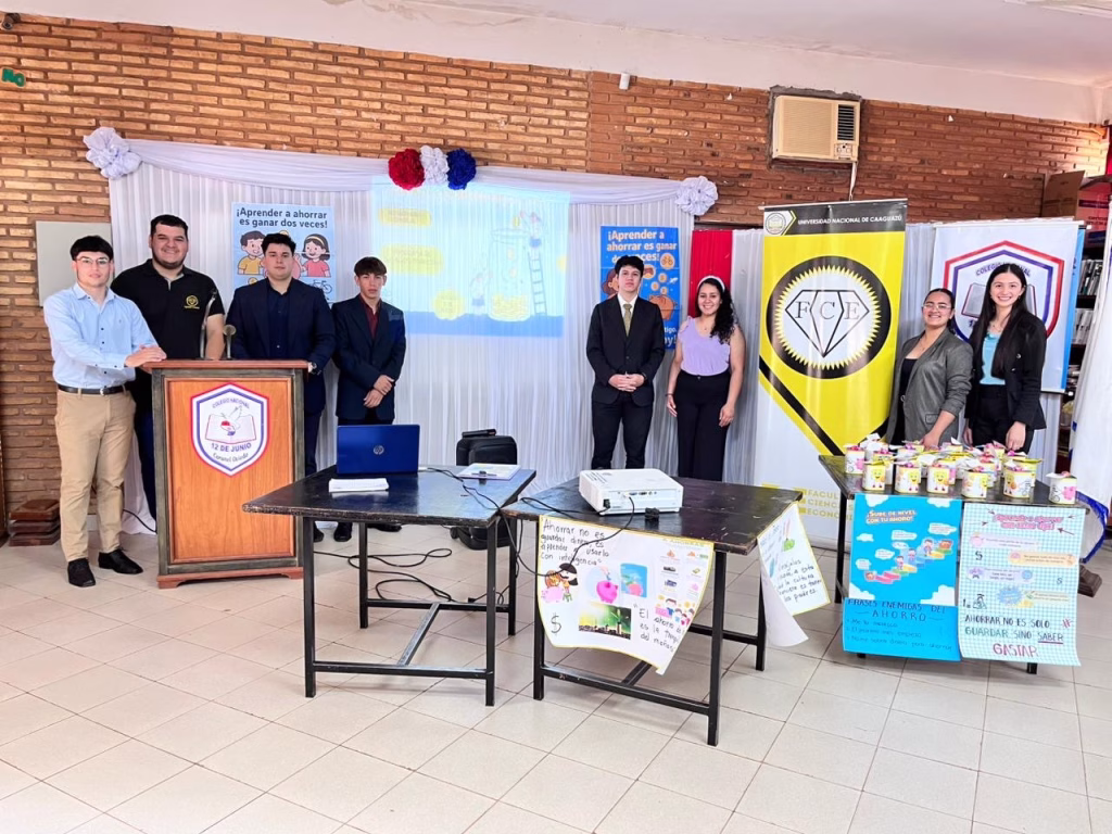En la tarde de hoy, los estudiantes del tercer año de la carrera de Ingeniería Comercial realizaron una capacitación–taller dirigida a los alumnos del nivel medio del Colegio Nacional “12 de Junio” de la ciudad de Coronel Oviedo, en el marco del proyecto de Extensión Universitaria “Cultura del Ahorro: Hábitos Financieros Responsables para un Futuro Sostenible”.