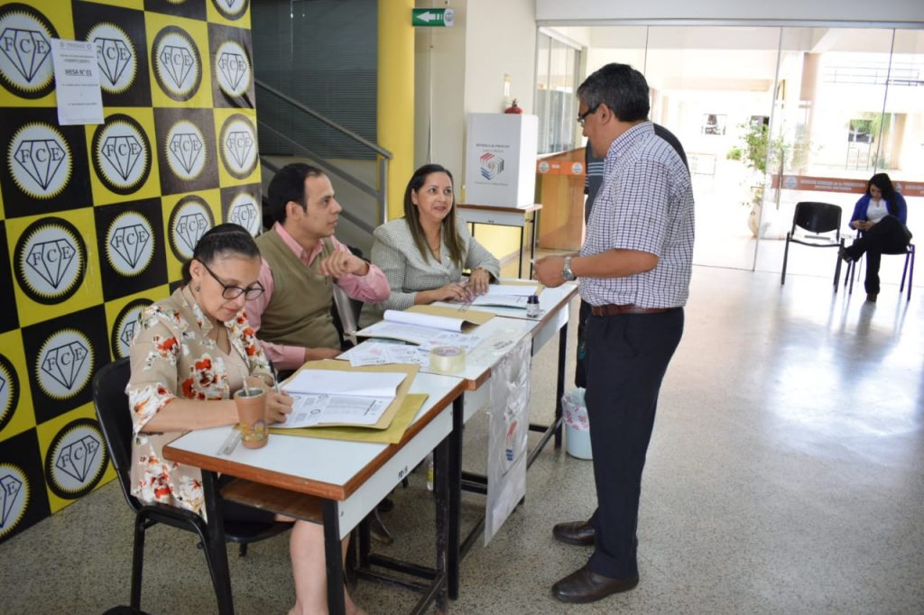 El pasado viernes, se llevó a cabo el proceso de elección de nuevos miembros del Consejo Directivo de la Facultad de Ciencias Económicas de la UNCA, quienes asumirán sus funciones a partir del 2020. Los representantes electos fueron Osvaldo Fermín Vargas Chávez y Hugo Fabián Miranda Aquino (imagen principal) por el estamento Estudiantil y Luis Alberto Sosa Sosa por el estamento Egresados No Docentes.