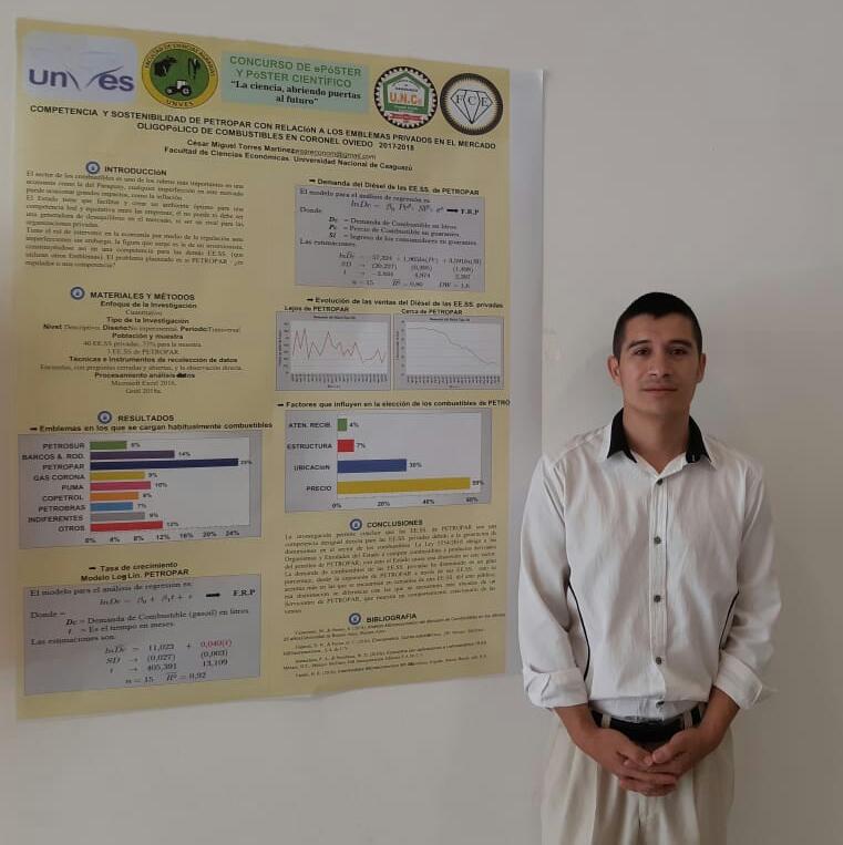 El día de ayer, ha culminado el Concurso Nacional de «E-Póster y Póster Científico» desarrollado en la Universidad Nacional de Villarrica del Espíritu Santo (UNVES), en la cual participaron los egresados de la carrera de Economía de la FCE – UNCA Marcos Rodríguez, Luis Sosa y además César Torres, quien obtuvo el 2° puesto; cabe destacar, que previamente fueron admitidos en la pre-selección realizada de sus respectivos pósters.