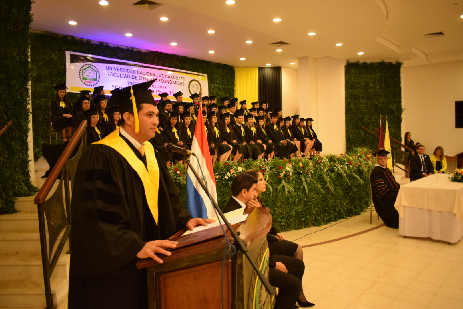 Con gran emoción se desarrolló hace instantes, el acto de graduación de los egresados de las carreras de Administración de Empresas, Contaduría Pública y Economía de la FCE – UNCA, realizado en el Salón Auditorio «Juan Pablo II», donde participaron autoridades Institucionales y familiares de los egresados.