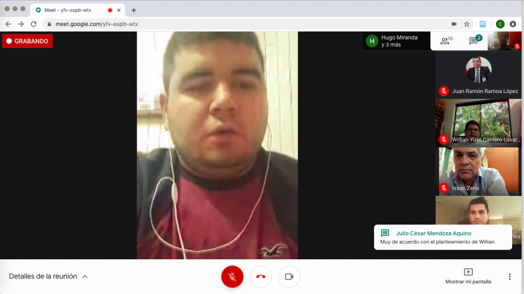 En la tarde de hoy, los miembros del Consejo Directivo de la Facultad de Ciencias Económicas de la UNCA, llevaron a cabo la primera reunión en forma virtual mediante videollamada; en la ocasión, se han analizado las acciones de contingencia académica implementadas por la FCE tras las medidas de aislamiento social establecidas por el Gobierno Central con miras a la prevención de la expansión del COVID-19.
