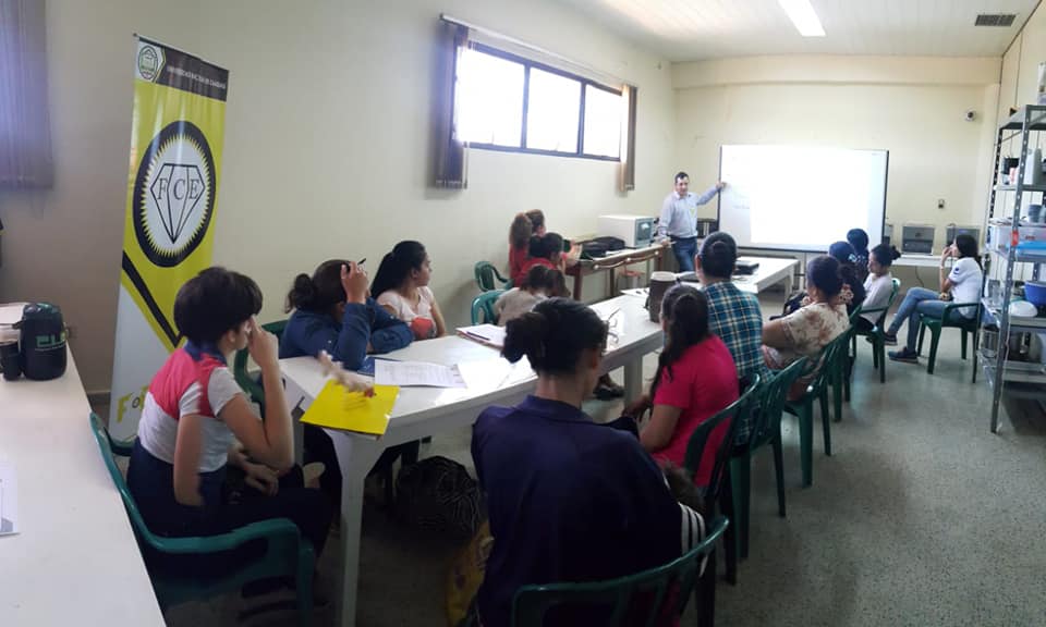 En el marco de la ejecución del proyecto de extensión «Mejoramiento de la Calidad de vida de mujeres rurales del Paraguay», alumnos y docentes de la FCE, se encuentran asistiendo a las mujeres de la zona de Tuyu Pucú y Las Mercedes, sobre los «Costos de Producción»; además, se realizan tareas lúdicas con los hijos de las participantes relacionados a los temas abordados.