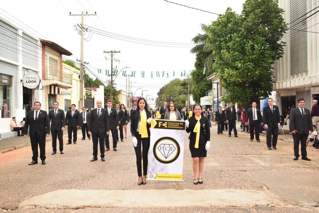 En un acto lleno de compromiso y patriotismo, las autoridades, directivos, docentes y alumnos de la Filial Caaguazú de la Facultad de Ciencias Económicas UNCA desfilaron hoy en honor a los 179 años de la fundación de la Ciudad de Caaguazú.