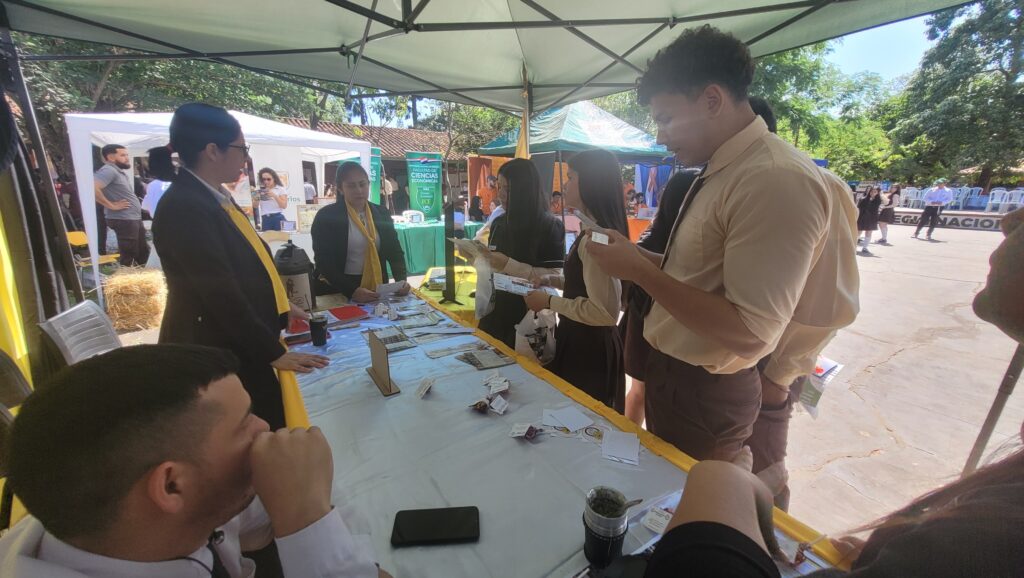 El día de hoy, la FCE UNCA Filial Caaguazú participó en la Expo Carrera organizada por el Colegio Nacional Mariscal Francisco Solano López, que reunió a universidades e institutos de la zona para presentar sus diferentes ofertas académicas a los alumnos del tercer curso. 📚👩🎓👨🎓